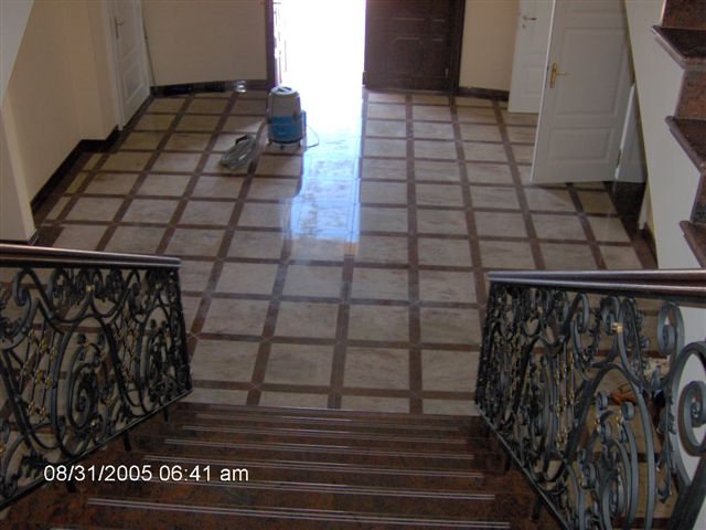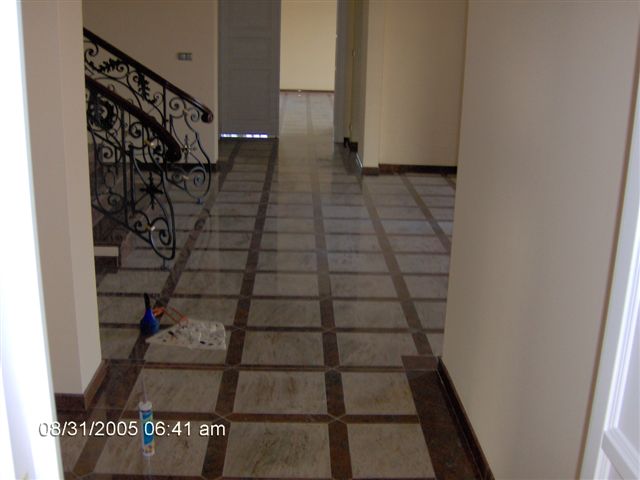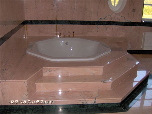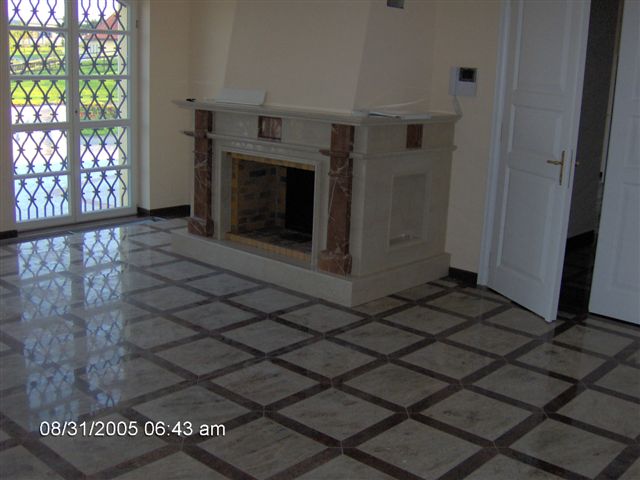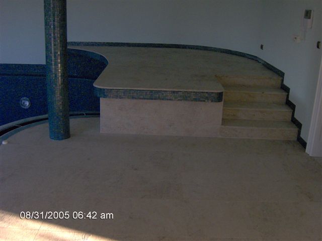 Ukázky naší práce - RD Březý obklady koupelen, krby, bazén, schodiště a dlažby