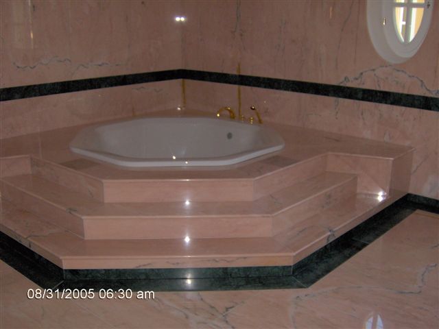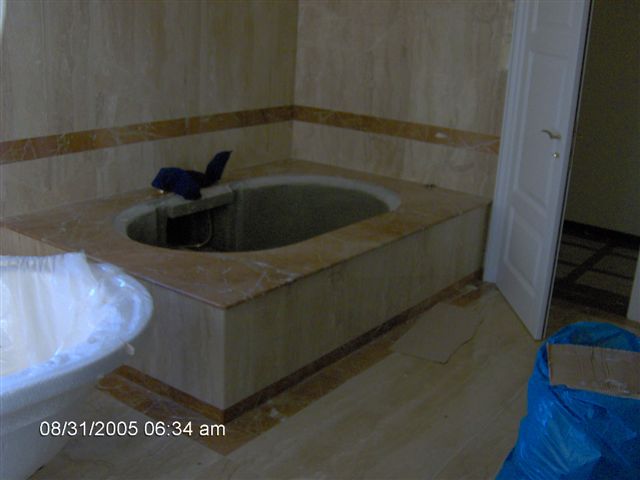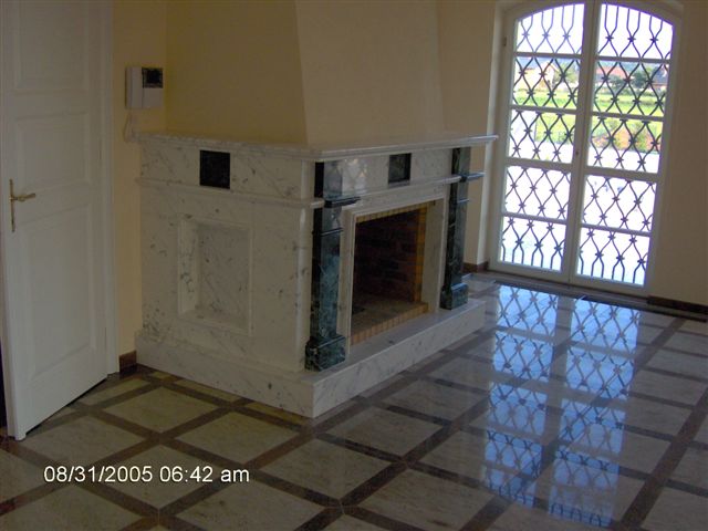 Ukázky naší práce - RD Březý obklady koupelen, krby, bazén, schodiště a dlažby